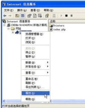 第一步:打开IIS,在默认网站上点右键选择“属性”。(如图5)
