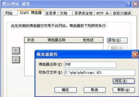 一般情况下设置某语言或执行程序的映射关系都是通过ISAPI筛选器解决的,PHP也不例外。